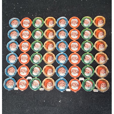Gamle tyske glansbilleder, helark, julemands hoveder, mål: 12 x 16 cm.