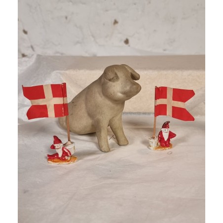 Gammelt lertøj, sparebøsse, gris, mål: 17 x 9,5 cm.