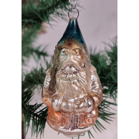 Antikt glaspynt, julemand med grangren, h: 8 cm.