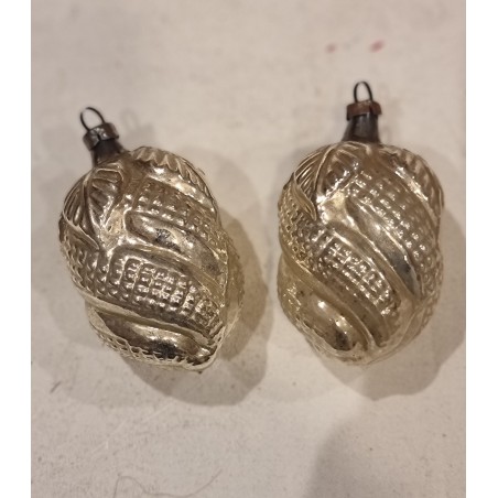 2 antikke glaskugler, jugend pynt, h: 6 cm (2stk)