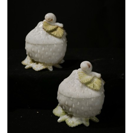 Antique glass bonbonniere, strawberry and snail, h: 15 cm.