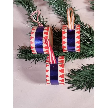 Old cardboard drums with blue foil, size: 3 x 5 cm.