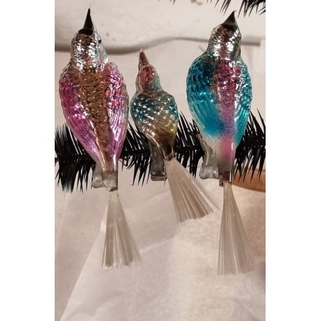 Old glass ornaments, big birds with a black skull, pastel, l: 17 cm.
