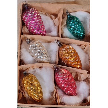 Old glass ornament, pine cones, colored, h. 6 - 8 cm.