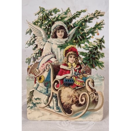 Tall, antique Christmas scrap, sleigh ride, h: 24 cm.