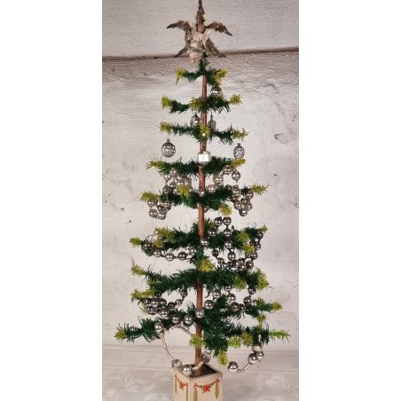 Antique two-tone feather tree with ornamnts and garlands, h: 112 cm (from tree foot to top ornament).