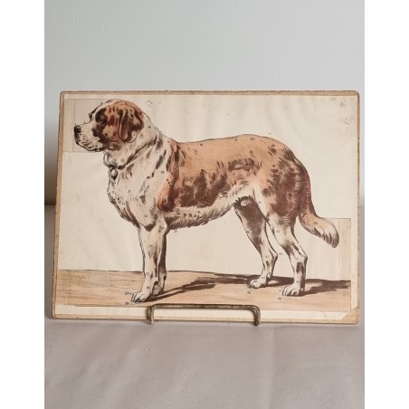 Small, antique visual aid board, Sct. Bernhardt dog, size: 19,5 x 25,5 cm.