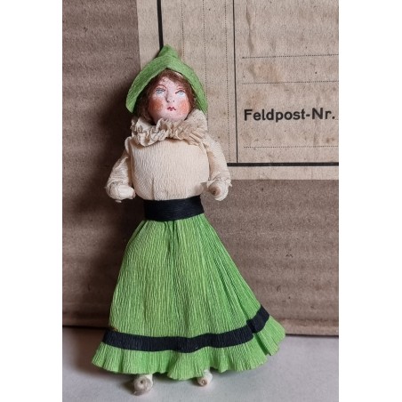 Antique ornament, lady in crepe, cotton and papier-mache, h: 13 cm.