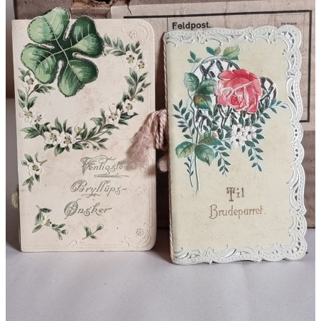 Antique greetings card, size: 16x10+15,5x9 cm (2x)