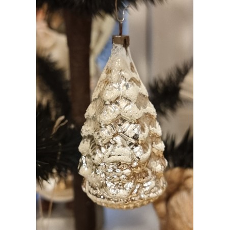 Antique glass ornament, christmas tree with Santas head, h: 7,5 cm.