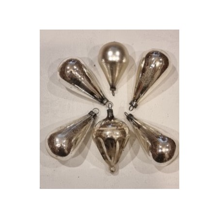 Collection of old glass ornaments, silver drops, h: 7,5 - 8 cm.