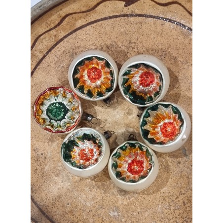 Box with old glass ornaments, reflectors, colored, h: 5 cm.
