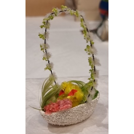 Old Easter ornament, egg basket with chicken, h: 9 cm.