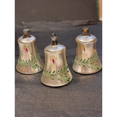 Old glass ornament, bells, silver with decoration, h: 6 cm.