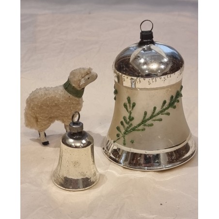 Old glass ornament, tall bell with decoration, h: 7,5 cm.
