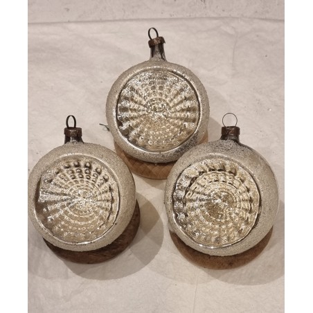 Old glass ornament, reflector, silver/white, h: 5,5 cm.