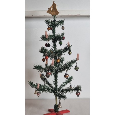 Antique paper tree with orig. glass ornaments and candleholders, h: 48 cm.