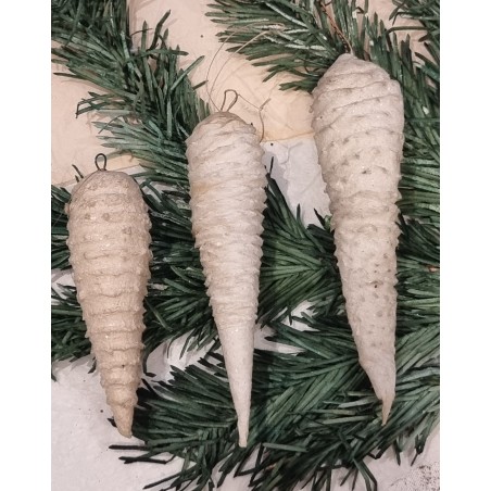 Antique cotton ornament, icicles, h: 8,5 - 11 - 12 cm.